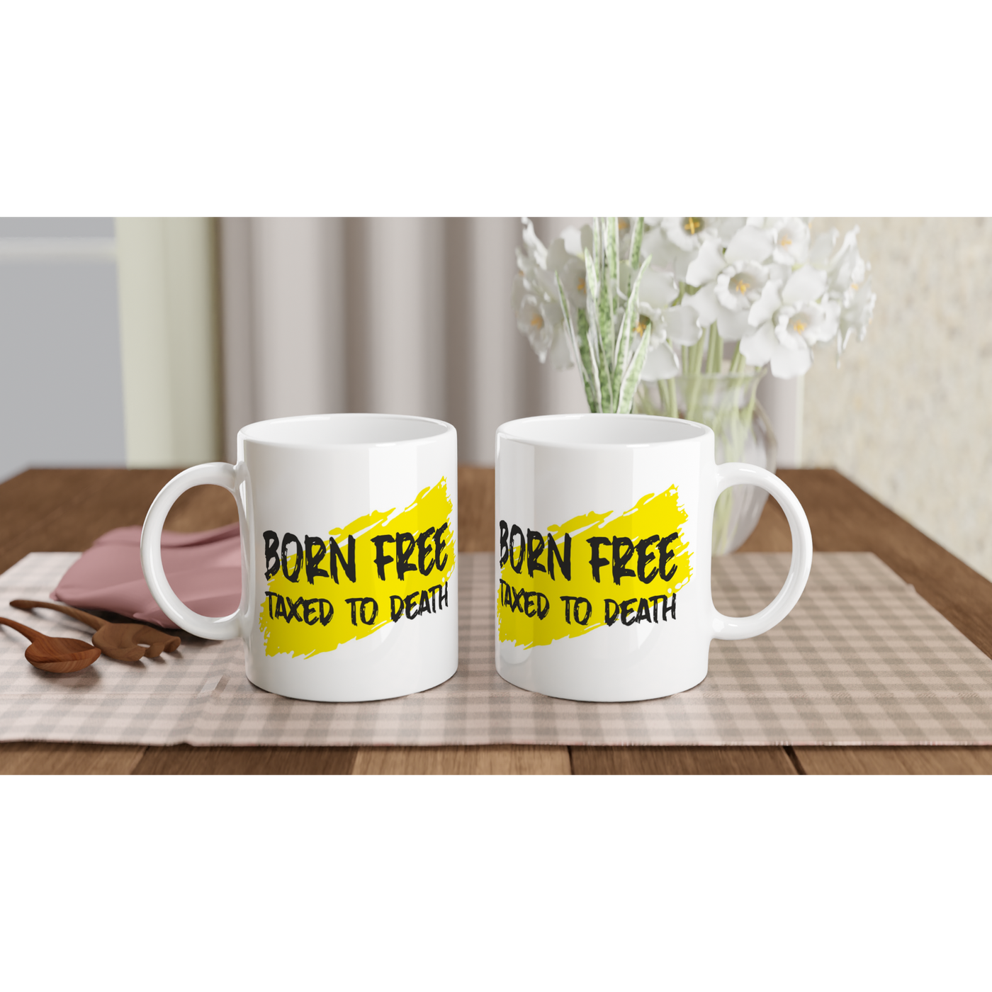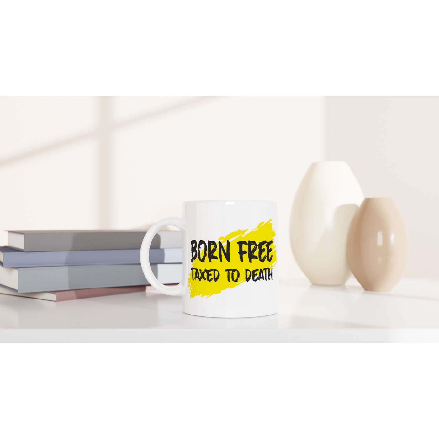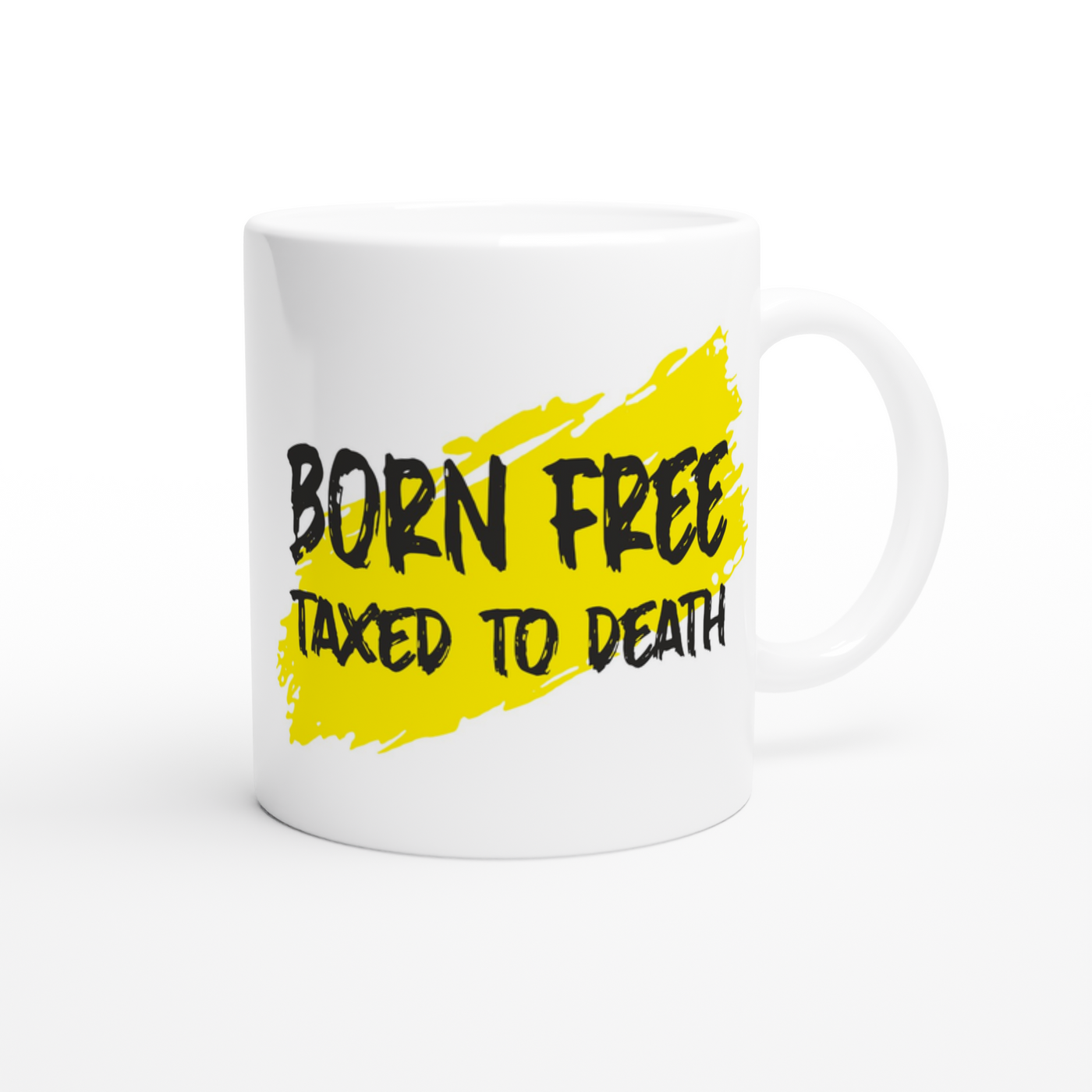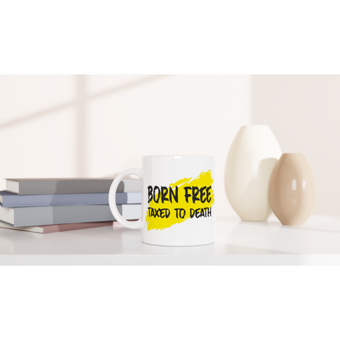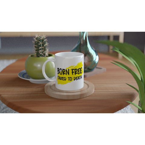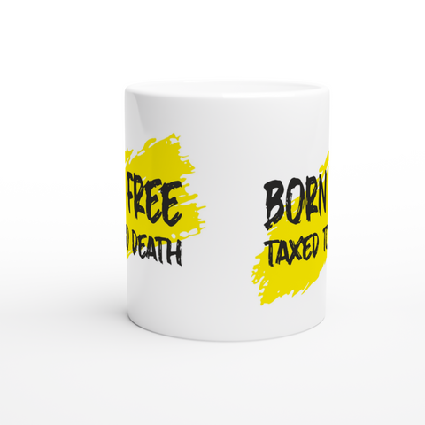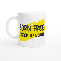 White 11oz Ceramic Mug Born Free Taxed To Death
