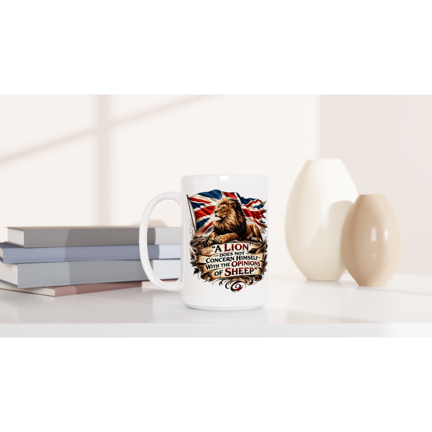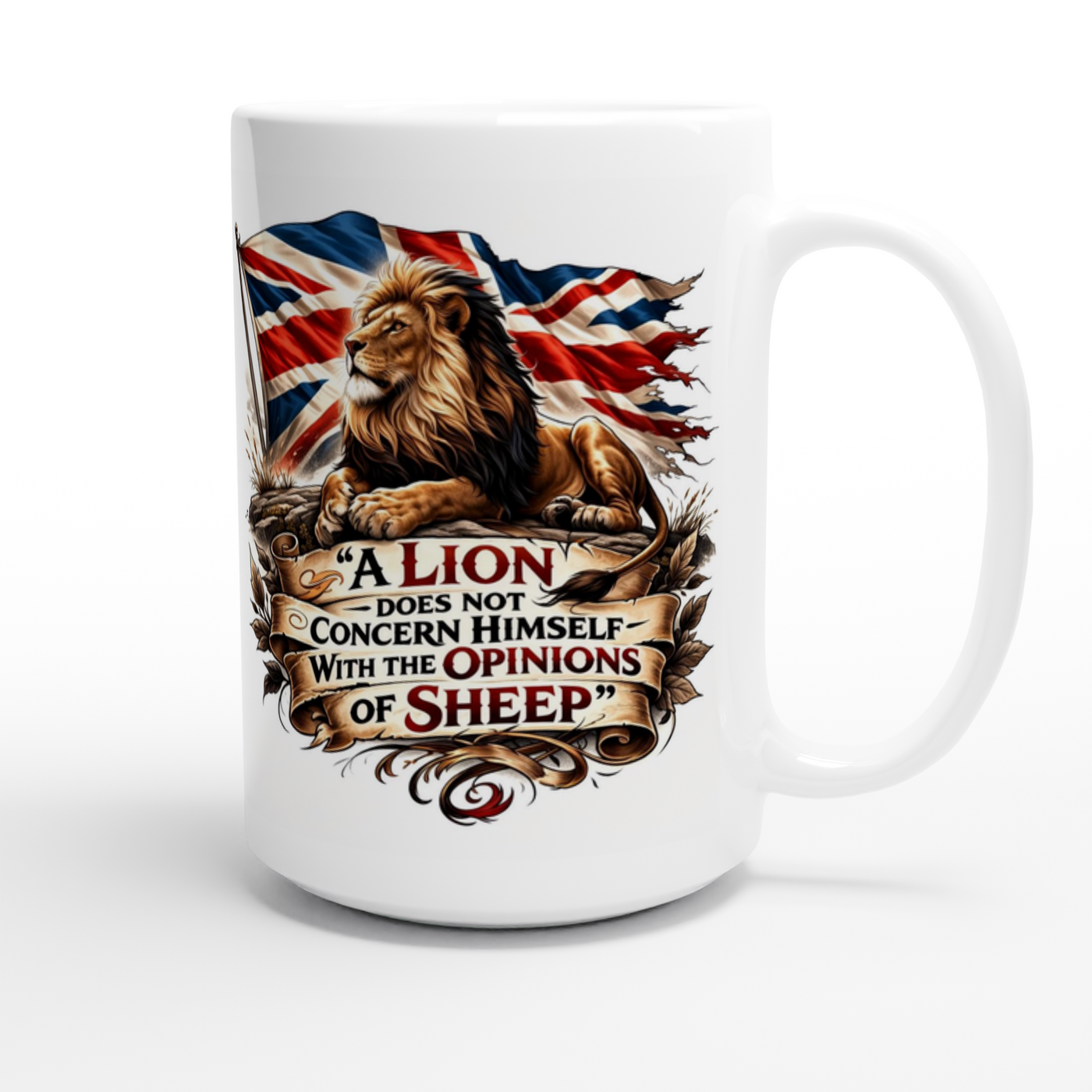 Show your pride with this bold and powerful lion and Union Jack design, created for true English patriots. Featuring a majestic lion set against the iconic Union Jack flag and the striking quote, “A Lion Does Not Concern Himself With the Opinions of Sheep,” this artwork represents strength, courage, and unwavering national pride.