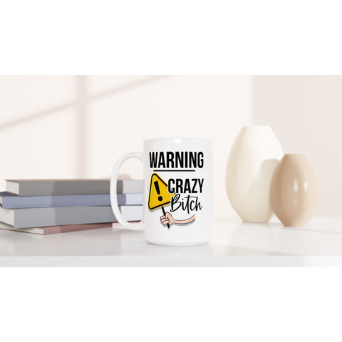 White 15oz Ceramic Mug Warning Crazy Bitch