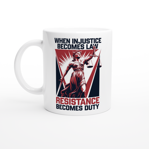 White 11oz Ceramic Mug When Injustice Becomes Law Resistance Becomes Duty