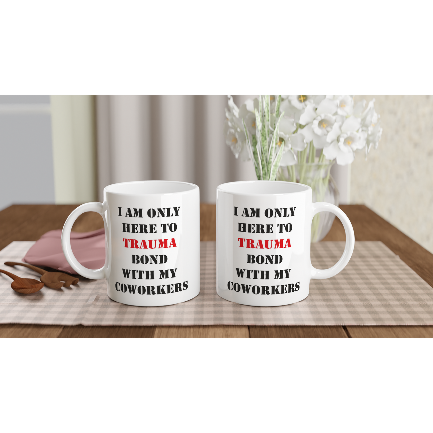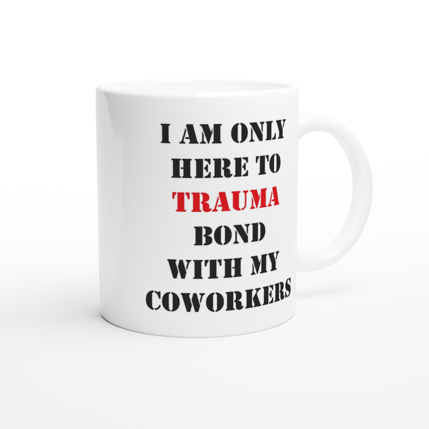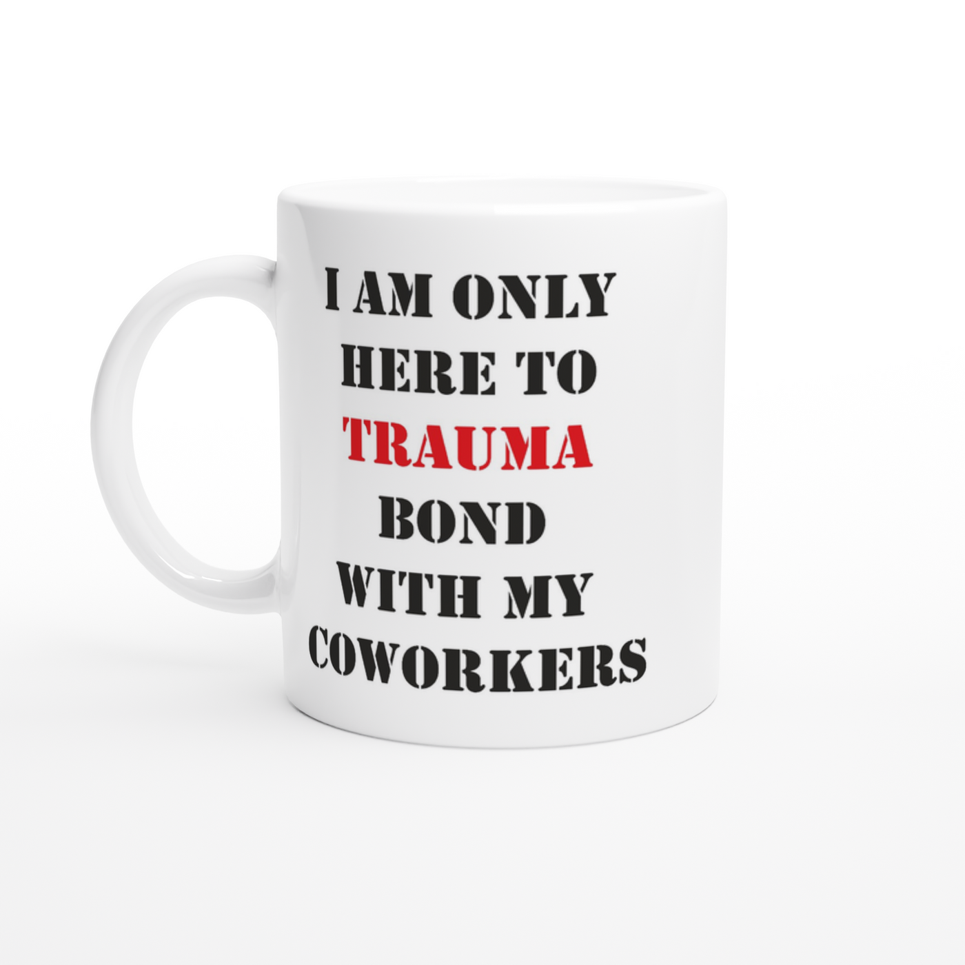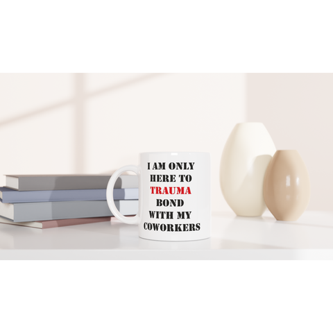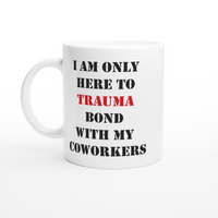 White 11oz Ceramic Mug I Am Only Here To Trauma Bond With My Coworkers