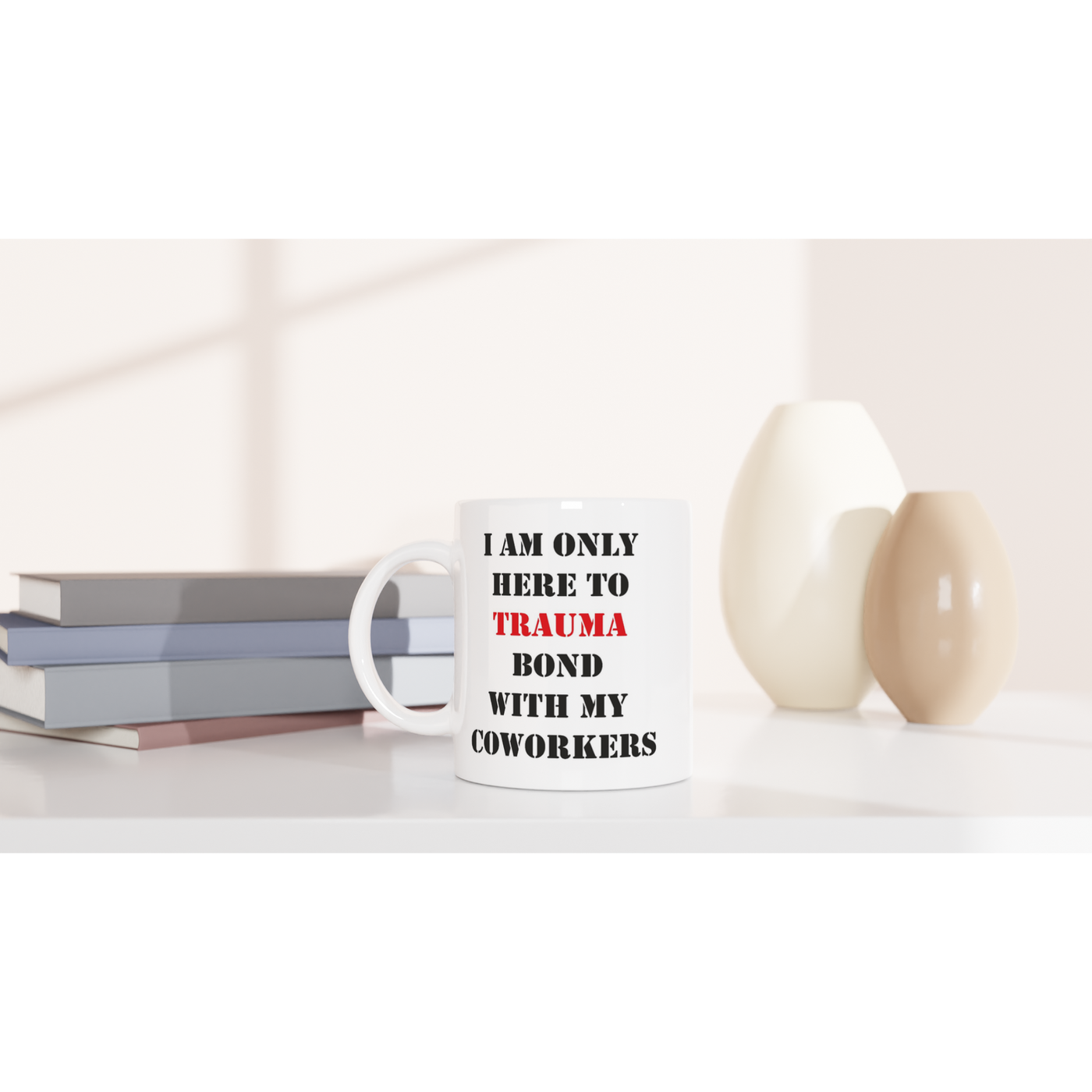 White 11oz Ceramic Mug I Am Only Here To Trauma Bond With My Coworkers Sale