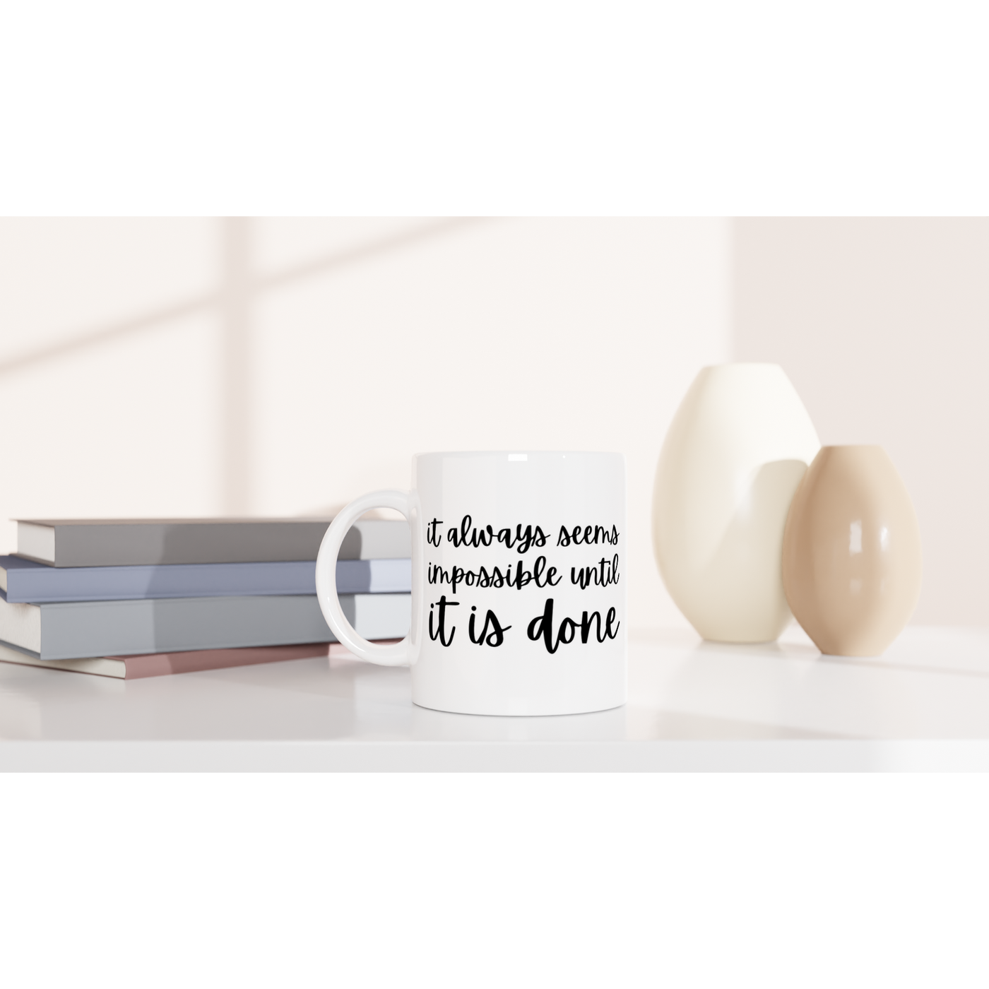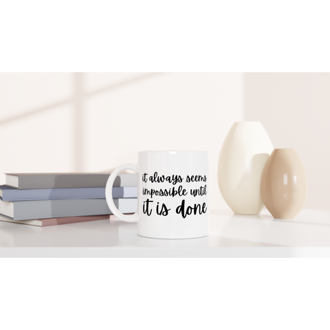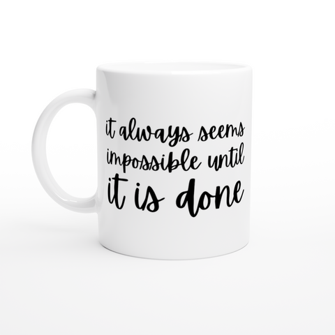 White 11oz Ceramic Mug It Always seems Impossible Until It Is Done