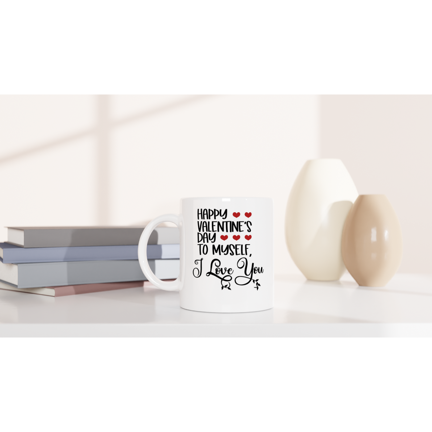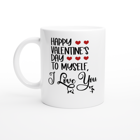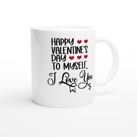 White 11oz Ceramic Mug Happy Valentines Day To Myself, I Love You