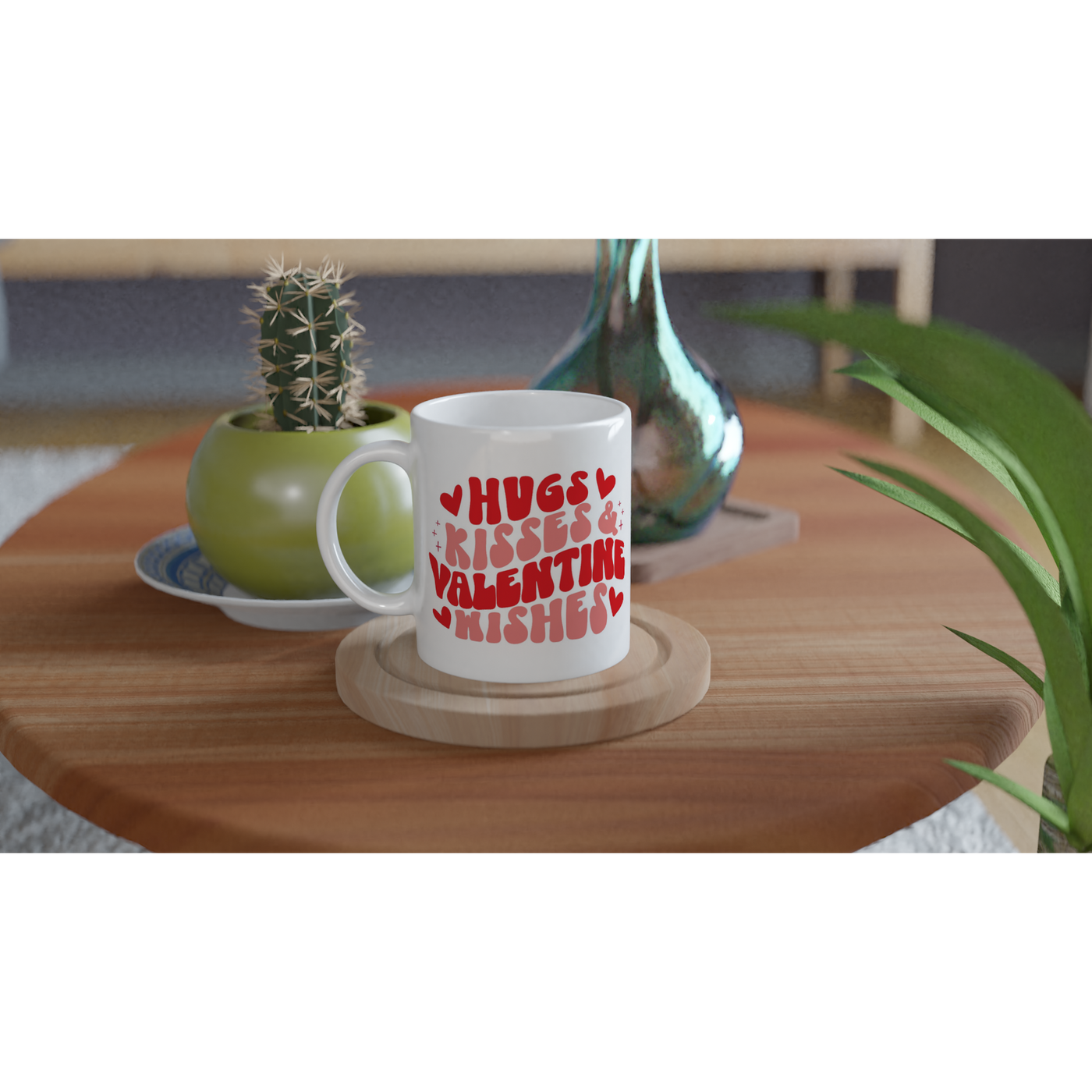 White 11oz Ceramic Mug Hugs Kisses & Valentine Wishes