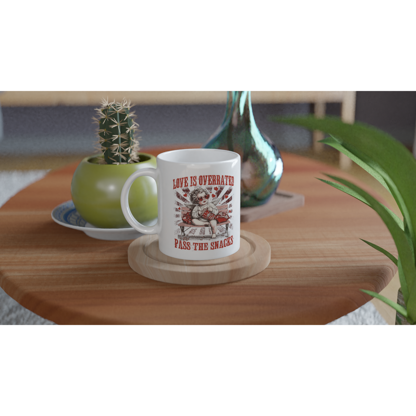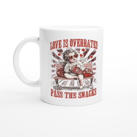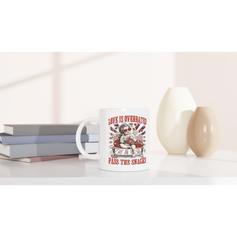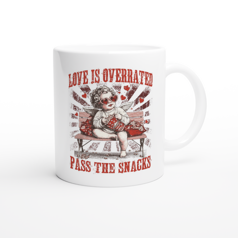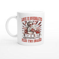White 11oz Ceramic Mug Love Is Overrated Pass The Snacks Sale