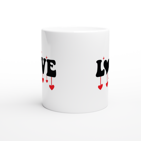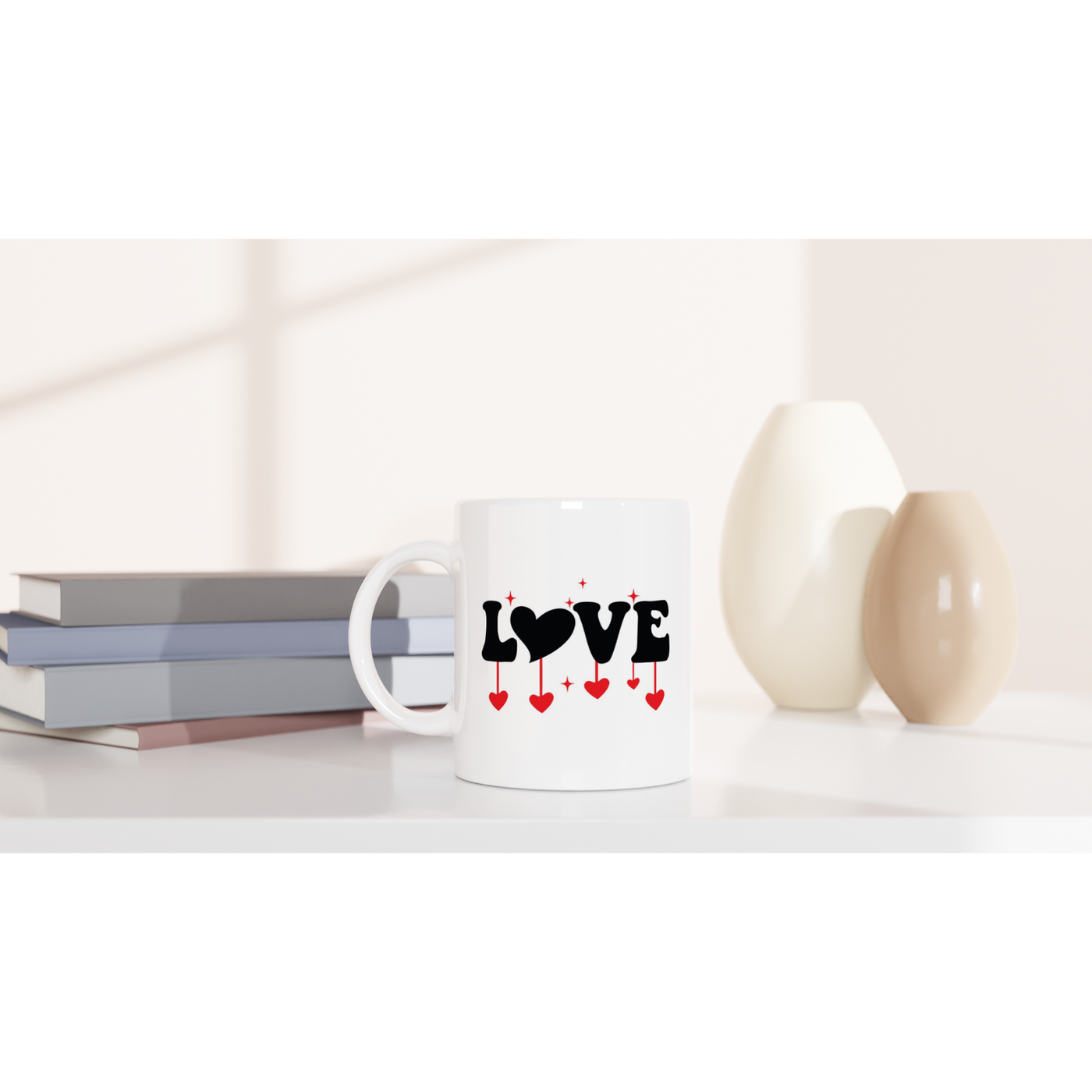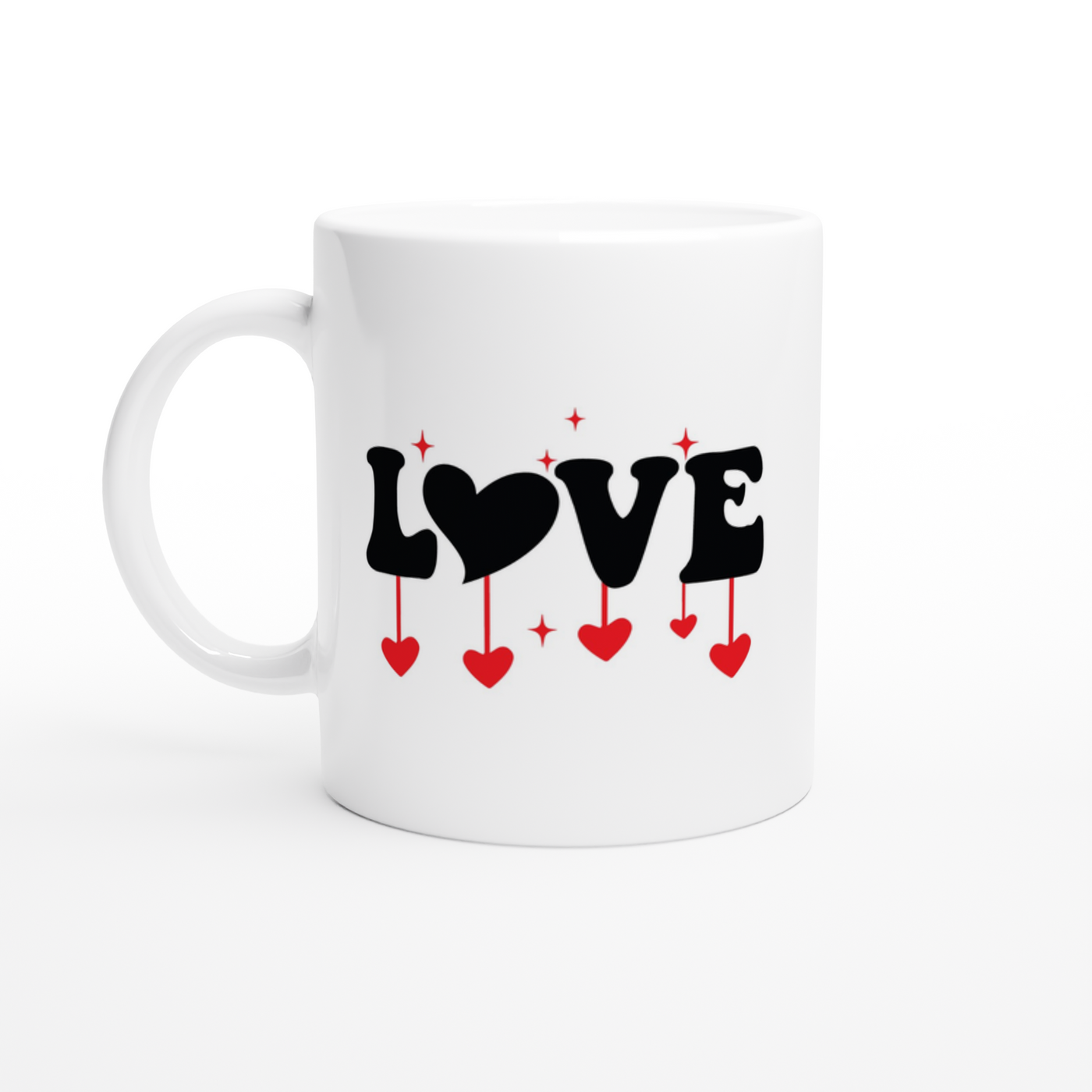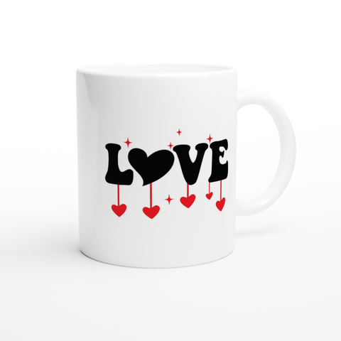 White 11oz Ceramic Mug Love With Hanging Hearts