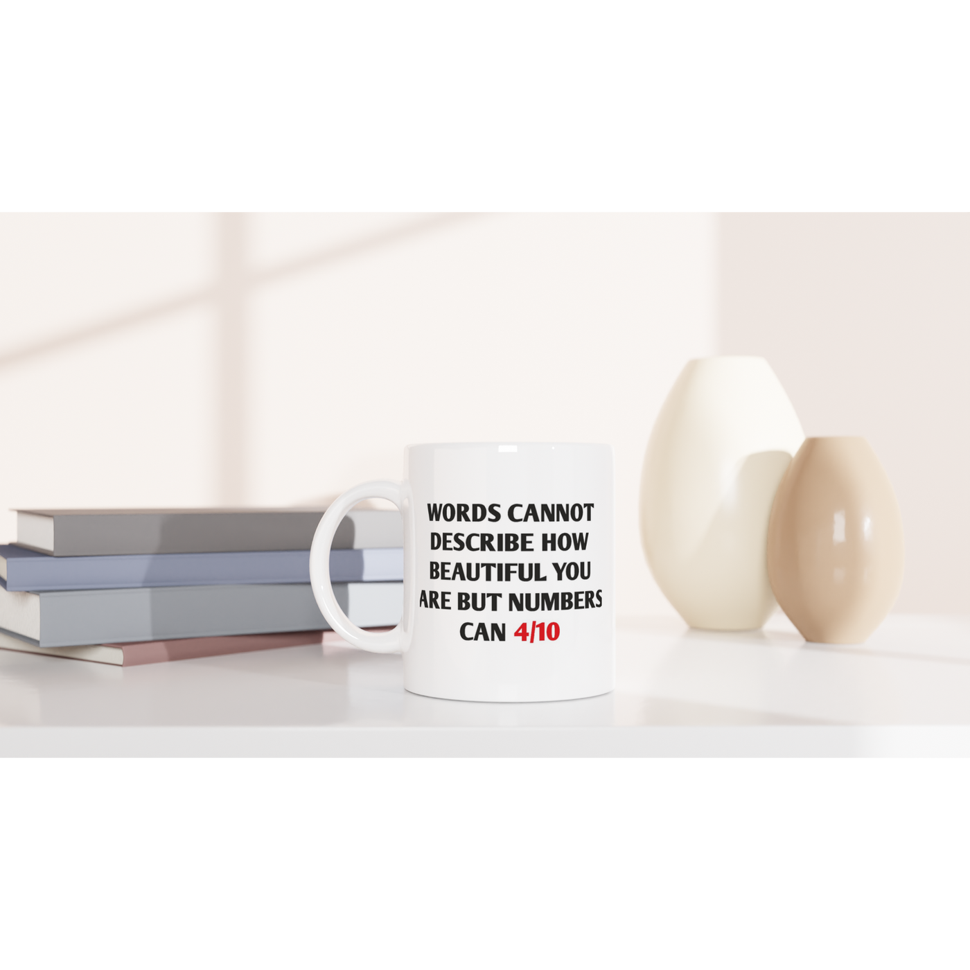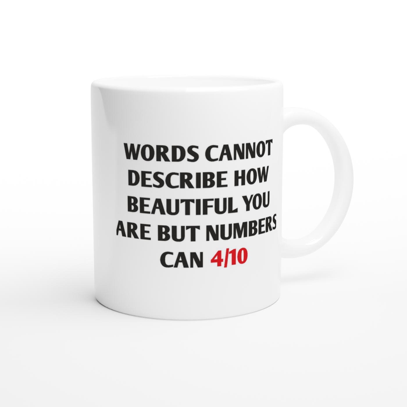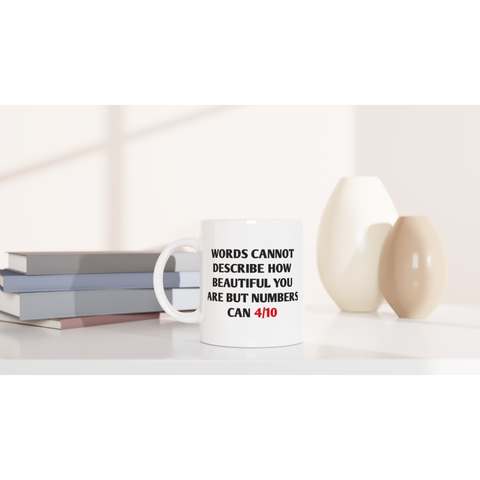 White 11oz Ceramic Mug Words Cannot Describe How Beautiful You Are But Numbers Can 4/10