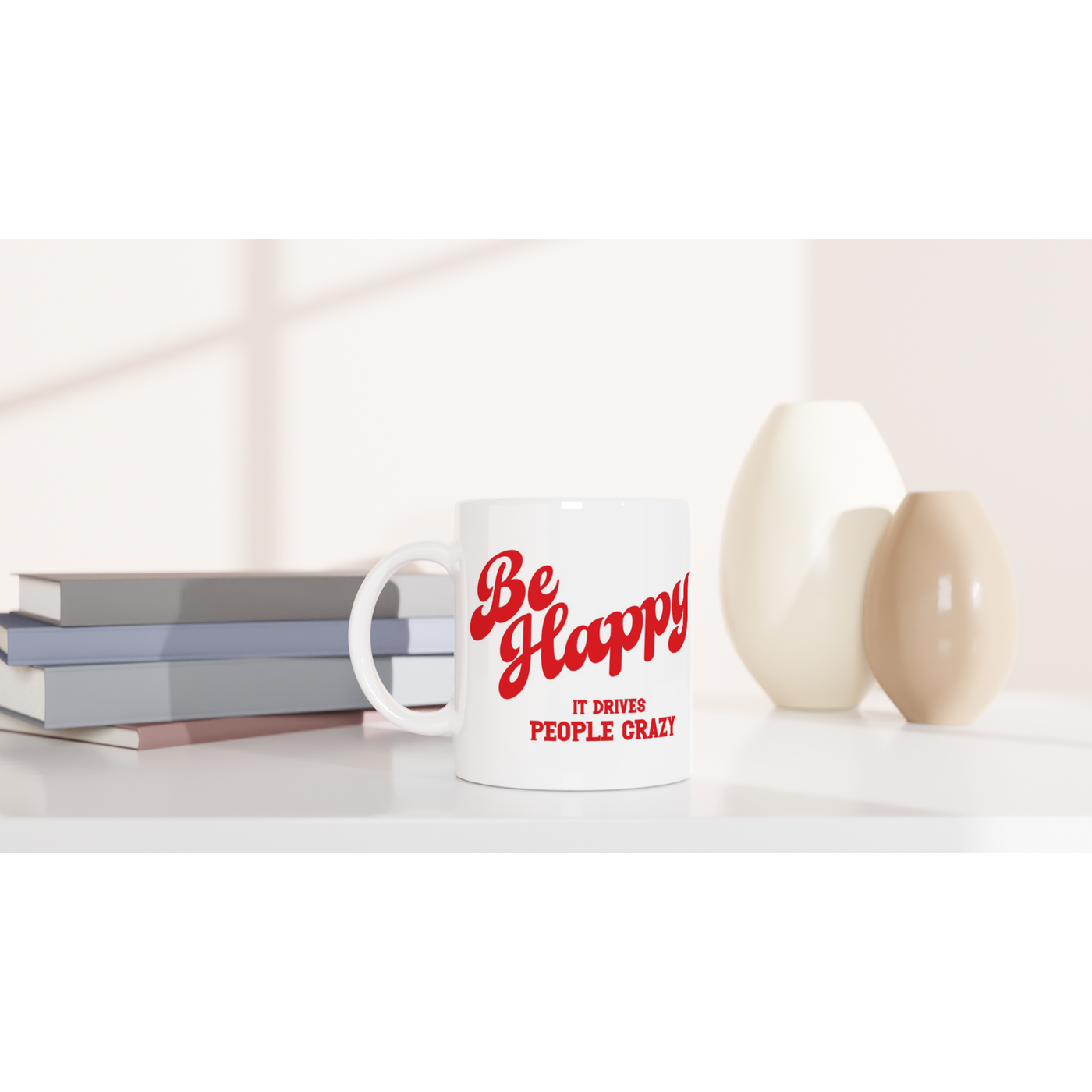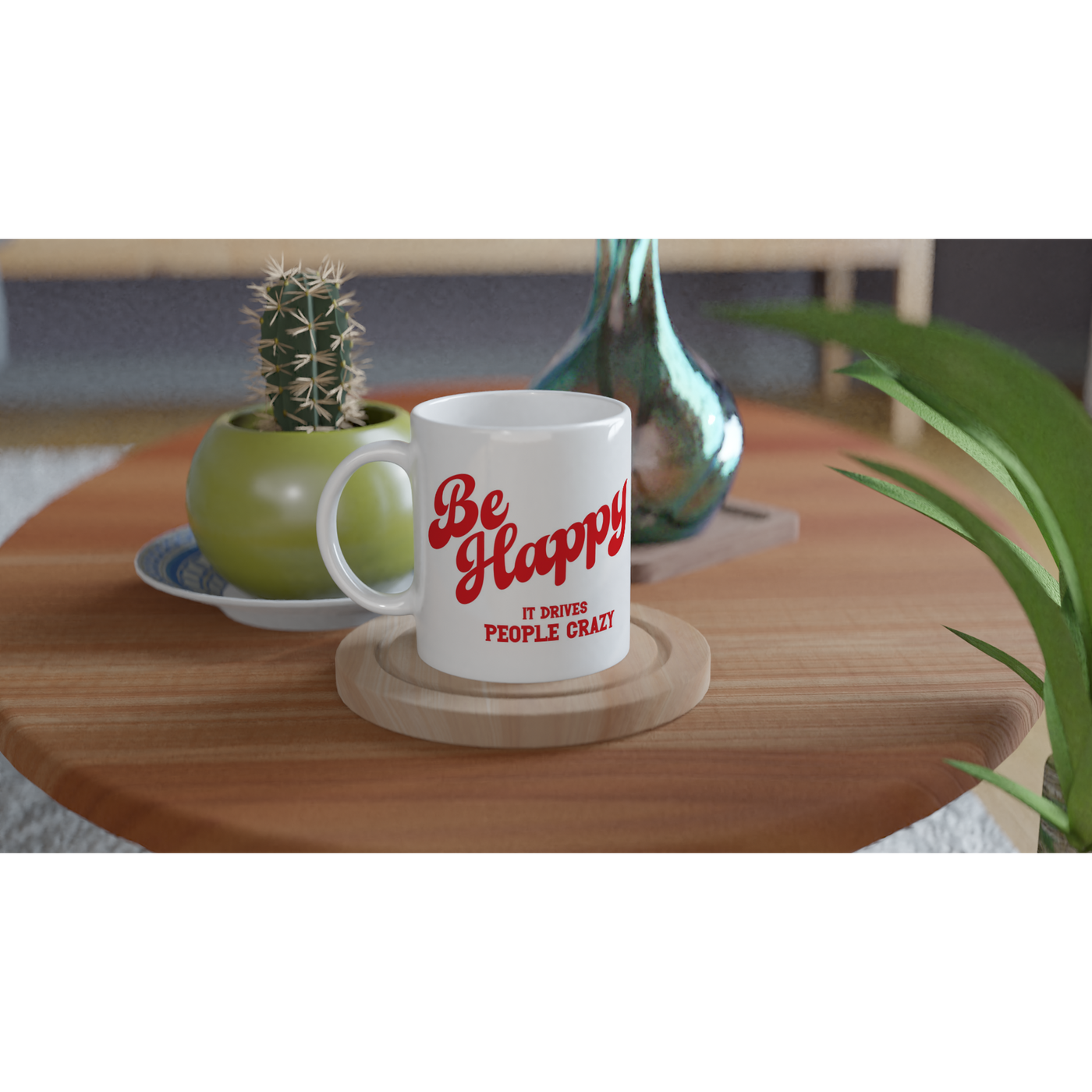 White 11oz Ceramic Mug Be Happy It Drives People It Drives People Crazy Sale