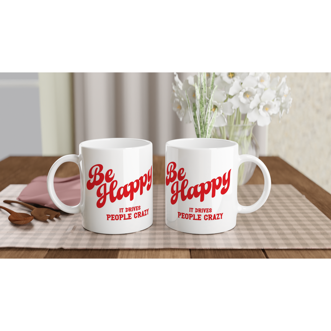White 11oz Ceramic Mug Be Happy It Drives People It Drives People Crazy